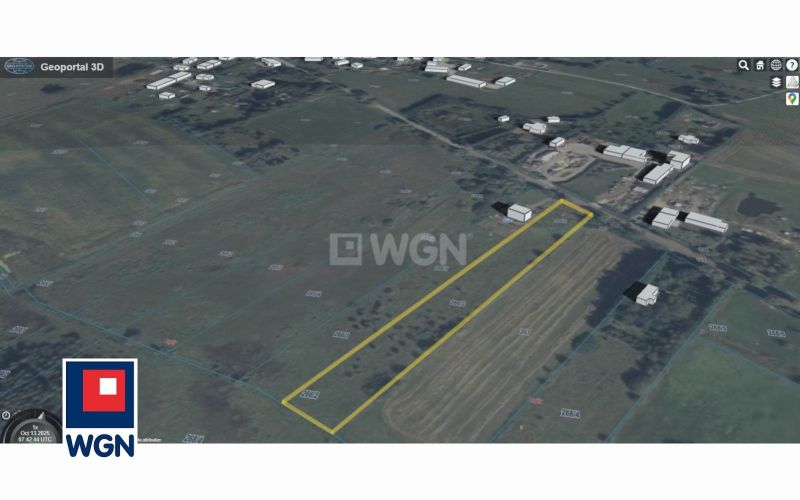 Działka o wydłużonym kształcie prostokąta z dużym potencjałem budowlanym. Sąsiaduje bezpośrednio z taką samą działką, gdyż powstała z podziału jednej działki na dwie równe części. Sąsiednia działka jest zabudowana budynkiem mieszkalnym. Wjazd na działkę bezpośrednio z drogi asfaltowej. Wymiary działki: 27,5 m x 29,4 m x 243,6 m x 236,3 m. Grunty orne klasy IV.